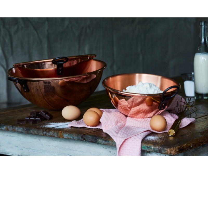 Les bols pâtissiers en cuivre sont conçus pour vous offrir une cuisson et un mélange parfaits, quel que soit le type de préparation. Le cuivre, excellent conducteur de chaleur, assure une distribution uniforme de la température, garantissant des résultats constants et précis. De plus, il permet d’optimiser les réactions des ingrédients, comme la libération naturelle de la pectine ou des autres éléments gélifiants, sans nécessiter d’additifs. Le bol en cuivre devient ainsi un outil essentiel pour réussir vos recettes sucrées ou salées avec simplicité et efficacité.