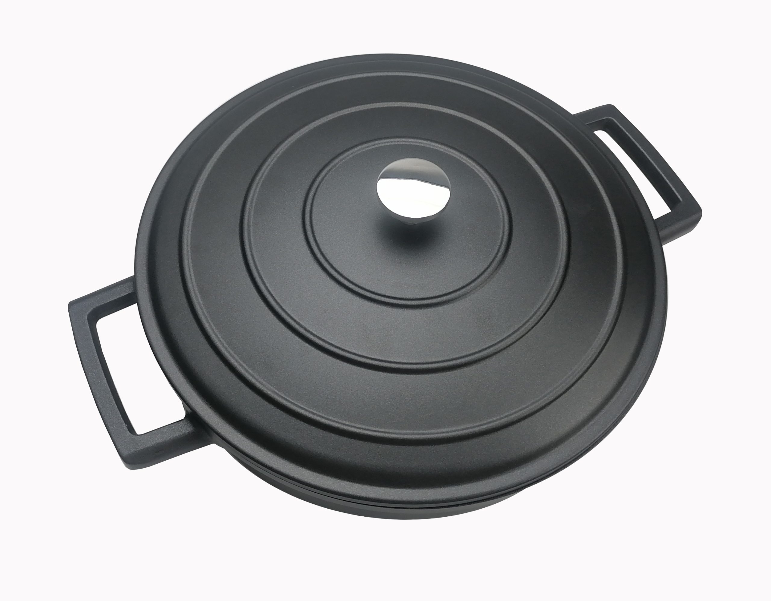 Son manche riveté offre une prise en main solide et confortable, tandis que ses poignées latérales facilitent la manipulation et le transport. Son design extérieur noir sobre et élégant s’intègre parfaitement dans toutes les cuisines.