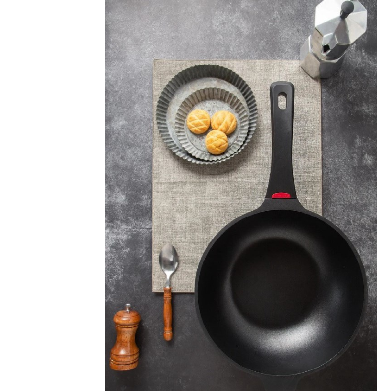 La poêle Thermo Regul de Baumalu vous permettra de surveiller la cuisson de vos aliments en toute sérennité. Fabriquée en fonte d’aluminium, elle est dotée du revêtement antiadhérent Xylan Plus 2 couches, qui permet de cuisiner avec très peu de matières grasses tout en assurant un nettoyage facile.