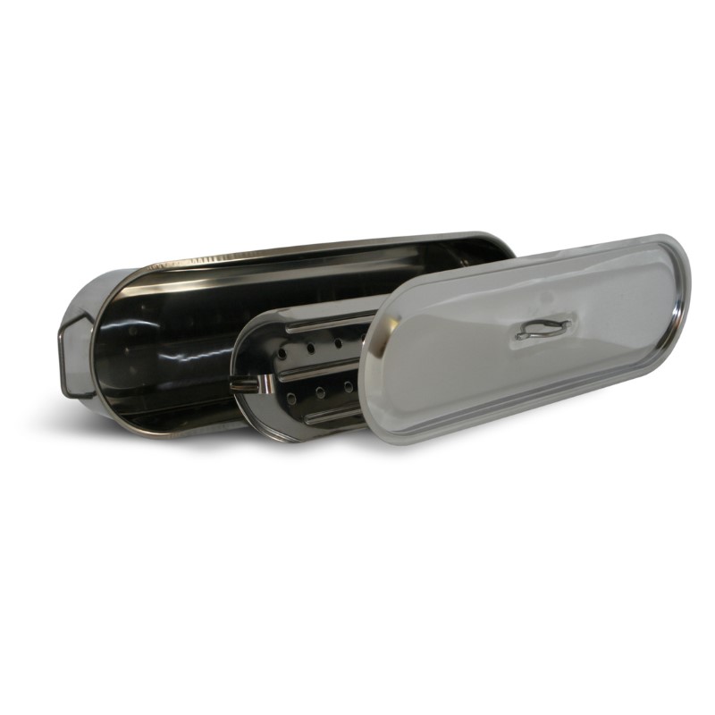 La poissonnière est conçue en acier inoxydable. Elle est composée d’une grille perforée pour optimiser la cuisson vapeur ou au court-bouillon. Elle facilite aussi le service à table.