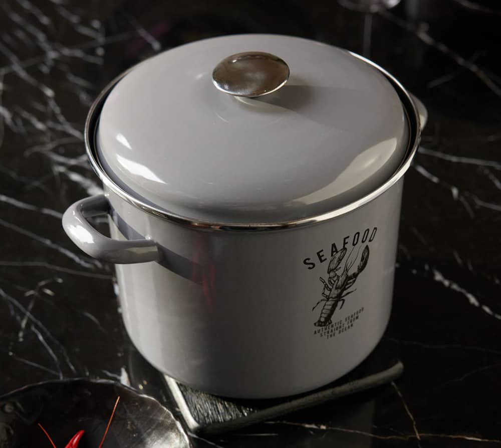 Acier émaillé Qualité lourde Intérieur émaillé noir Forme droite Anses métal Filmé avec étiquette couleur
